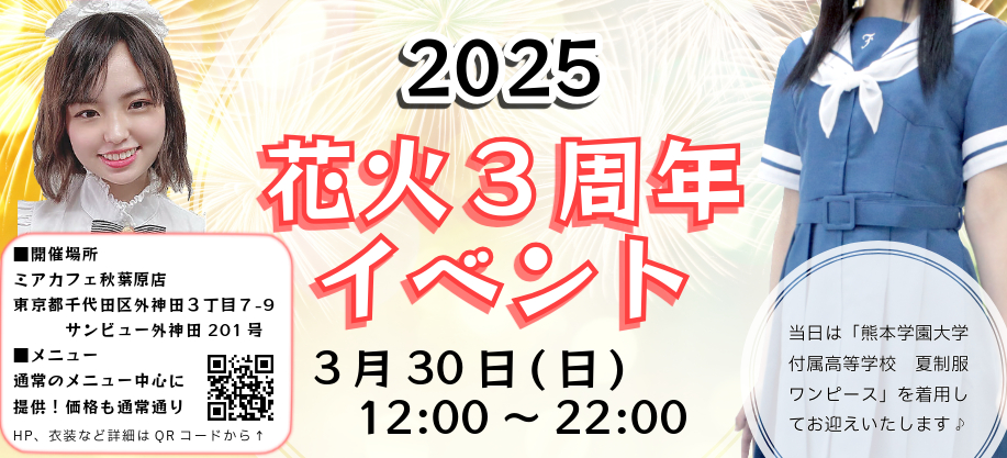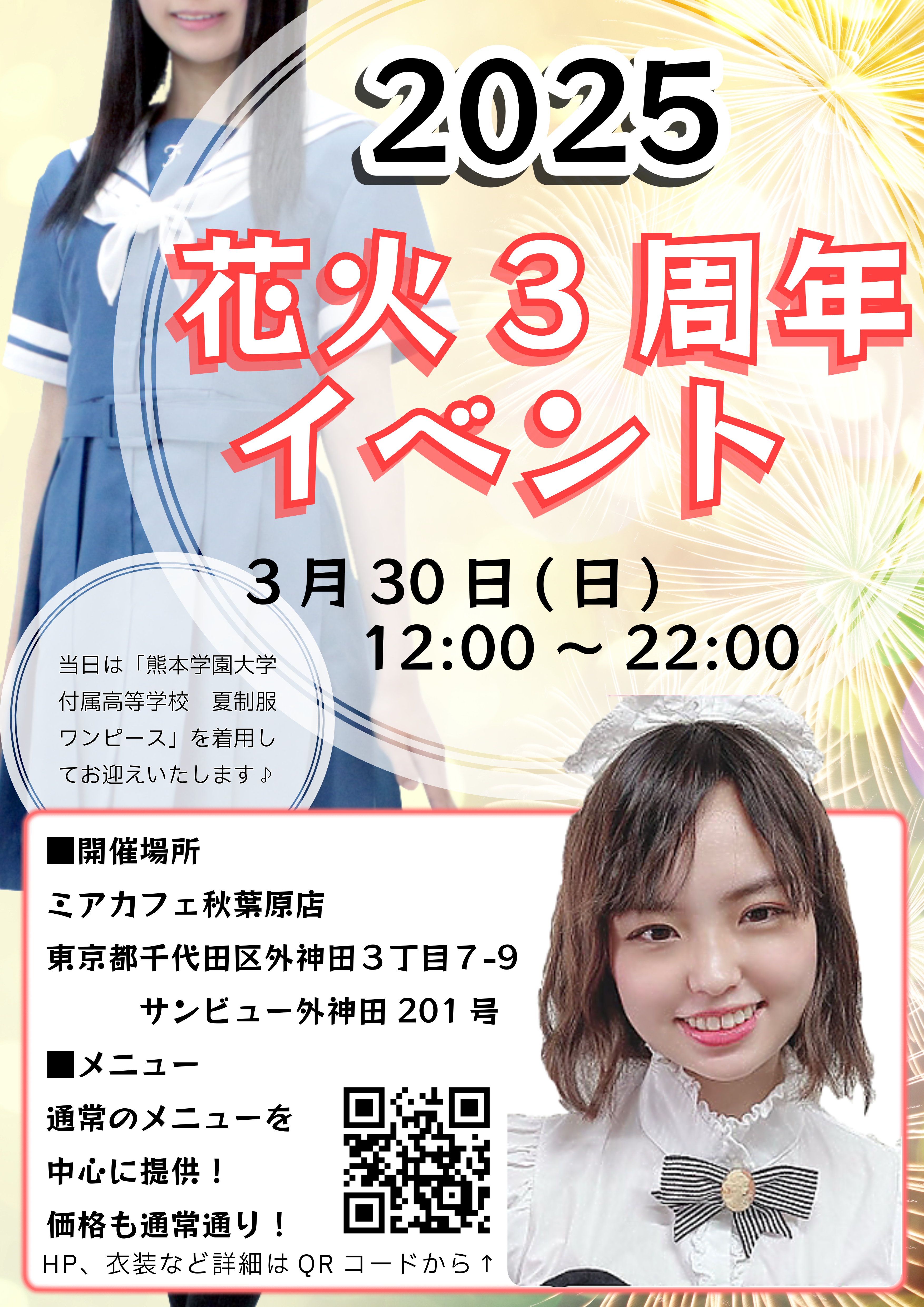 | 花火ちゃん・3周年イベント!inミアカフェ秋葉原店 |