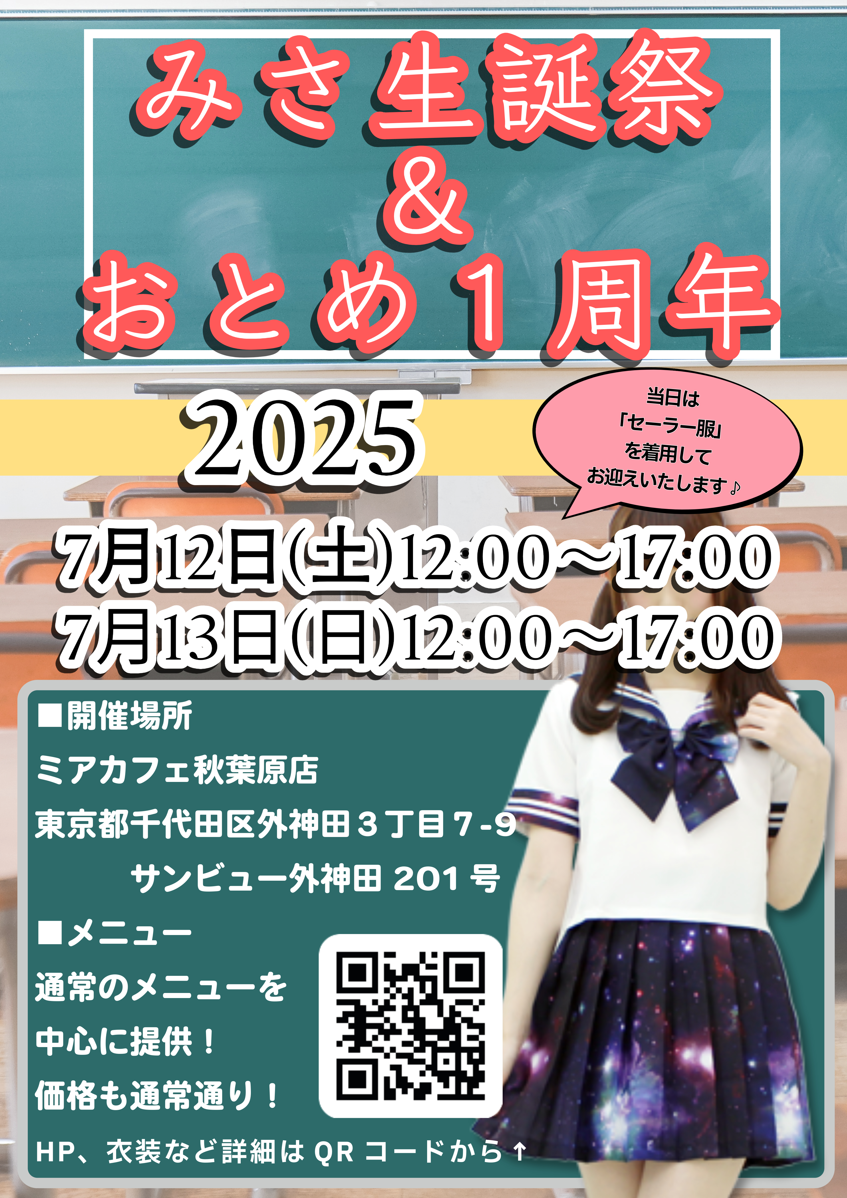 | みさちゃん生誕祭&おとめちゃん1周年記念合同イベント!inミアカフェ秋葉原店 |